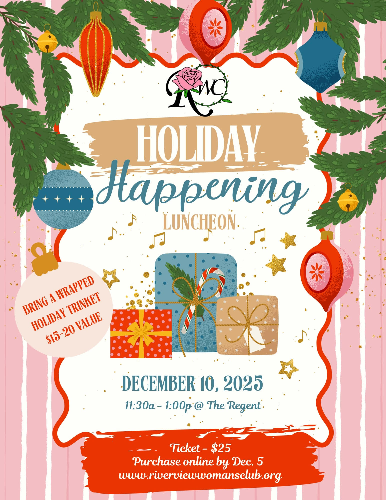 Our events are where friendships are made, connections are built, and great memories are created! From fun social gatherings to impactful community service projects, there’s always something exciting happening at the Riverview Woman’s Club. Whether you're looking to give back, meet new people, or just have a great time, our events offer something for everyone. Come join the fun and see what makes our club so special!